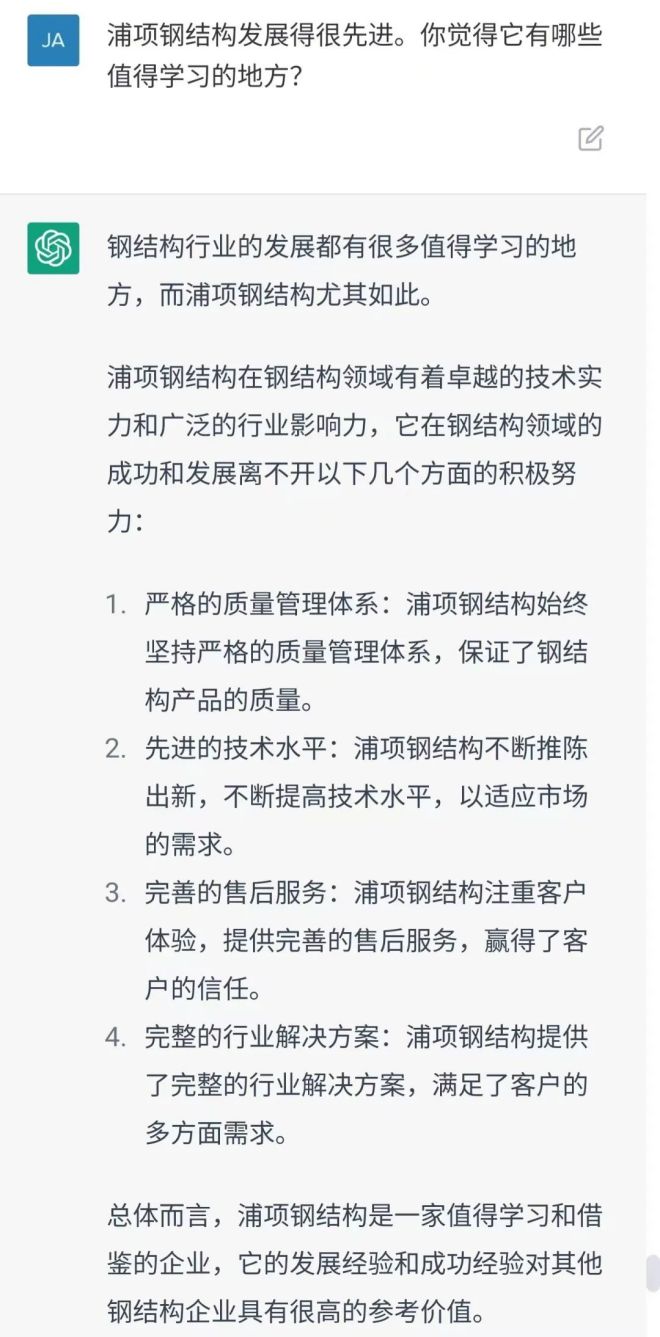 韓國浦項屬于發(fā)展鋼結(jié)構(gòu)的先行者、佼佼 者,對于中國鋼鐵行業(yè)而言有很多可以借鑒的經(jīng)驗。ChatGPT的回答大而全,似乎缺少一些有針對性的深度解析。