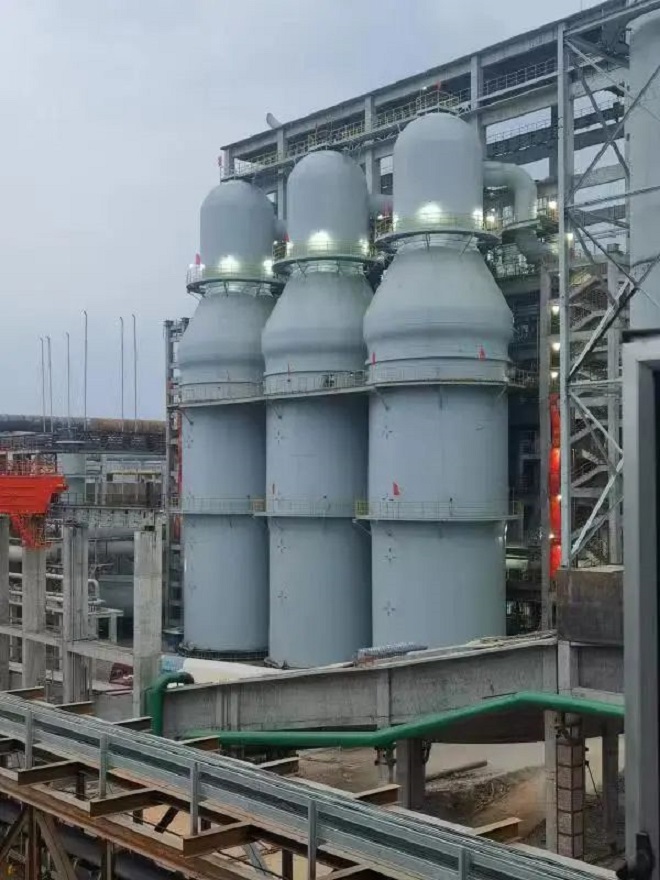 廣西翅冀鋼鐵有限公司目前有2座2060m3高爐配置了6座豫興四段式頂燃式熱風爐,熱風爐單燒高爐煤氣,空煤氣雙預熱,平均熱風溫度≥1250℃。此次投產的2號高爐,配置的3座豫興四段式頂燃式熱風爐于2022年8月5日開始施工,10月17日熱風爐本體完工,12月14日管道部分完成施工,12月25日烘爐并護航高爐投產!為提高勞動生產率和保證產品質量,豫興公司結合用戶生產實際現狀,避免功能過剩,對具有前瞻性的先進技術預留今后發展可能,采用成熟、可靠、先進、實用的熱風爐技術,做到技術先進、布置合理、水平適當,確保生產順行,操作維護簡捷方便。