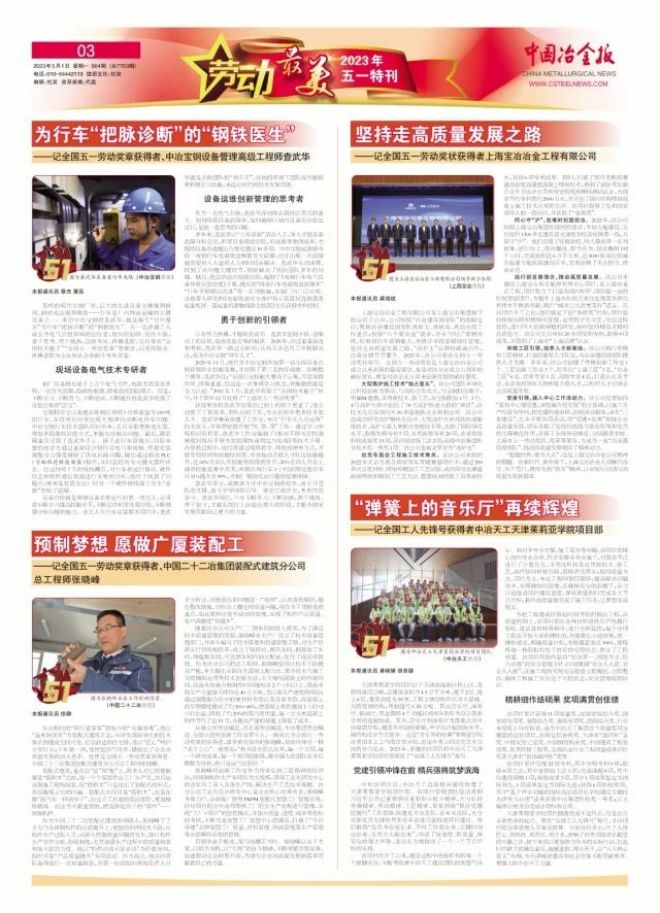 上海寶冶冶金工程有限公司是上海寶冶集團旗下的全資子公司,公司按照“冶金建設國家隊”的戰(zhàn)略定位,聚焦冶金建設國家隊再拔尖、再拔高、再創(chuàng)業(yè)的工作重點;按照“六個要效益”要求,夯實“四山”營銷市場,拓展國內(nèi)外營銷能力,多措并舉推進精細化管理,堅持走高質量發(fā)展之路,“高爐王”品牌揚威海內(nèi)外,經(jīng)營業(yè)績節(jié)節(jié)攀升。2023年,該公司榮獲全國五一勞動獎狀稱號。全國五一勞動獎狀是上海寶冶冶金公司成立以來獲得的最高榮譽,也是對該企業(yè)成立五周年的最好賀禮,更是對該企業(yè)五年來創(chuàng)新發(fā)展的最好褒獎。
