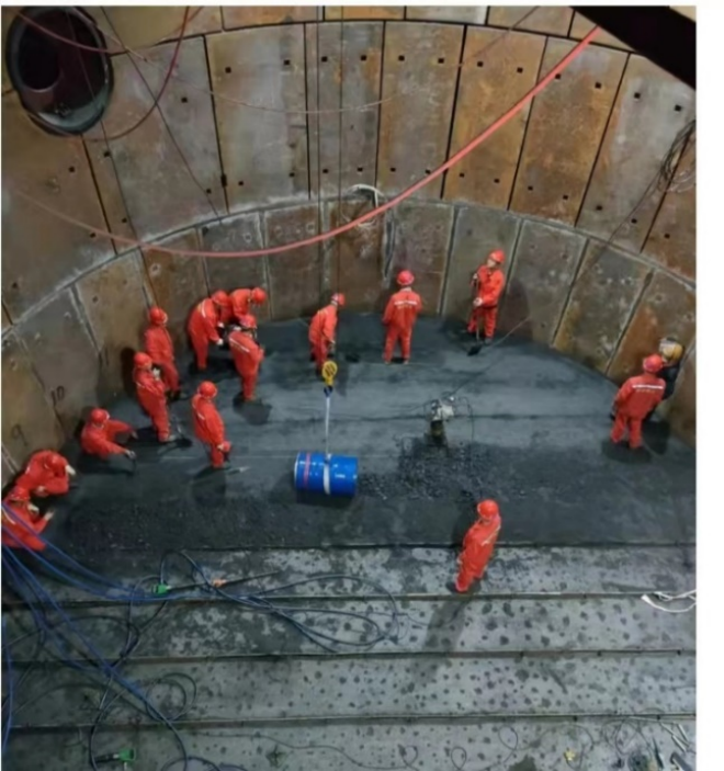 圖為在由聯合榮大總包的陽春新鋼1#高爐快速大修工程中,施工隊正在儲鐵地坑放凈殘鐵。