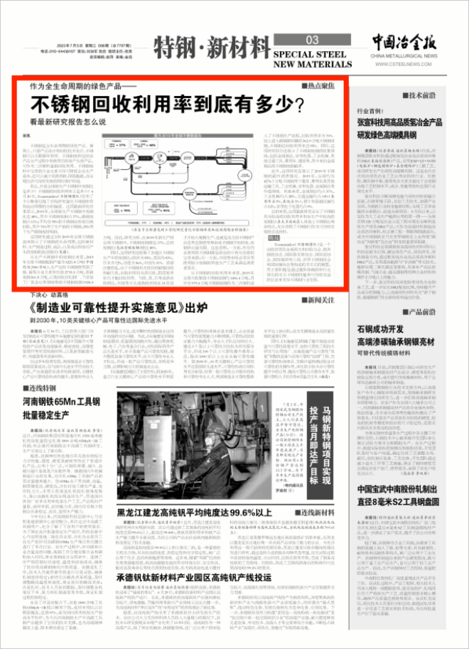 總的來看,這項最新研究證實了不銹鋼具有較高的回收利用率和在生產中較高的廢鋼比(在大多數地區),再加上不銹鋼長壽命特點,充分表明了不銹鋼可作為可持續發展的首選材料。(謝高)