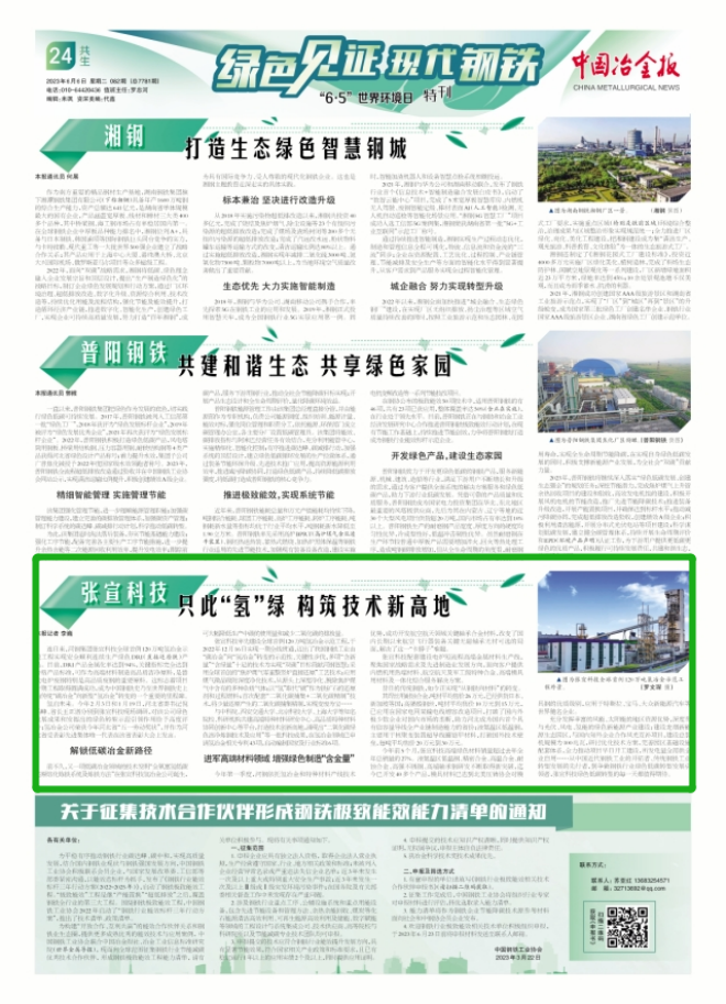 充分發(fā)揮豐富的風(fēng)能、太陽能的地區(qū)資源優(yōu)勢,深度參與光伏、風(fēng)電、氫能的綠色新能源產(chǎn)業(yè)建設(shè):建設(shè)龍煙新能源生態(tài)園區(qū),與國內(nèi)知外企業(yè)合作風(fēng)光互補(bǔ)項(xiàng)目,建設(shè)總裝機(jī)規(guī)模為100兆瓦,研討優(yōu)化技術(shù)方案,完善園區(qū)基礎(chǔ)設(shè)施配套體系,全力推動(dòng)項(xiàng)目早日開工建設(shè),所發(fā)電量全部供企業(yè)自用……從中國近代鋼鐵工業(yè)的開拓者、傳統(tǒng)鋼鐵工業(yè)轉(zhuǎn)型發(fā)展的先行者,到爭做鋼鐵行業(yè)綠色低碳轉(zhuǎn)型發(fā)展引領(lǐng)者,張宣科技綠色低碳轉(zhuǎn)型的每一天都值得期待。