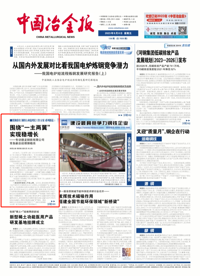 8月25日,工信部等七部門正式對外發布了《鋼鐵行業穩增長工作方案》(以下簡稱《方案》)。作為民營鋼企的德龍鋼鐵有限公司在促進行業穩增長方面做了哪些工作?如何確保《方案》落地落實?近日,《中國冶金報》記者對德龍鋼鐵有限公司常務副總經理郭曉亮進行了專訪。