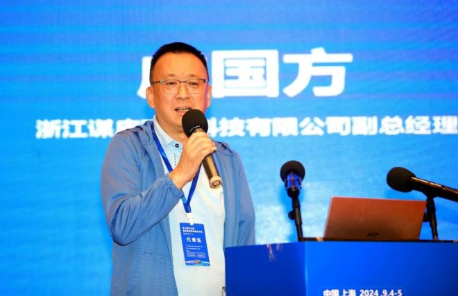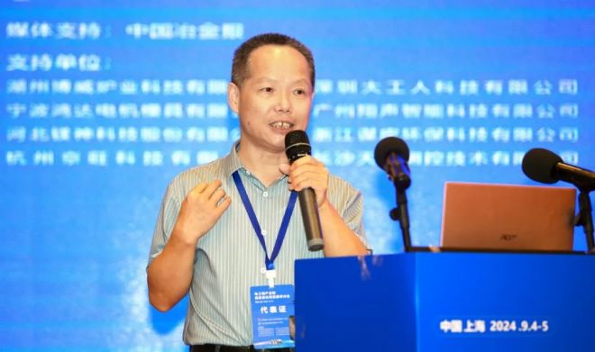 圖為孫文做《全球取向硅鋼氧化鎂應用技術及鎂神解決方案》的報告