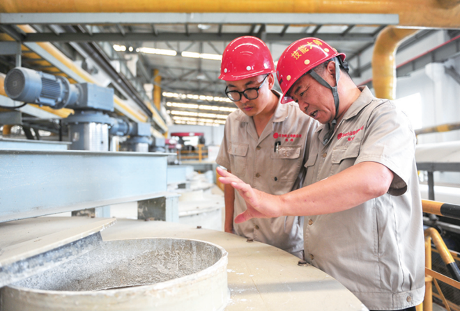 張文斌大師與團(tuán)隊(duì)成員進(jìn)行技術(shù)研討。(包鋼 供圖)