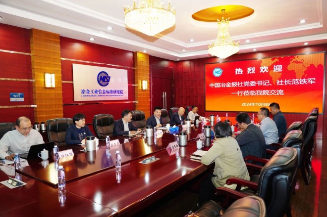 10月8日,中國冶金報社(以下簡稱:冶金報社)黨委書記、社長范鐵軍一行前往冶金工業信息標準研究院(以下簡稱:信息標準院),與信息標準院黨委書記、院長張龍強及相關部門負責人和專業人員,就進一步加強行業宣傳、服務行業發展等議題進行座談交流。