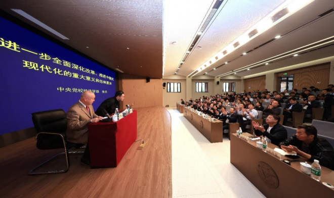 為了學習貫徹二十屆三中全會精神,會議特別邀請中央黨校(國家行政學院)經(jīng)濟學部教授張開作了題為《進一步全面深化改革、推進中國式現(xiàn)代化的重大意義和總體要求》的專題講座,他從進一步全面深化改革的重要性和必要性、指導思想、總目標、原則等方面,全面系統(tǒng)、深入淺出地對黨的二十屆三中全會精神進行了講解和輔導。