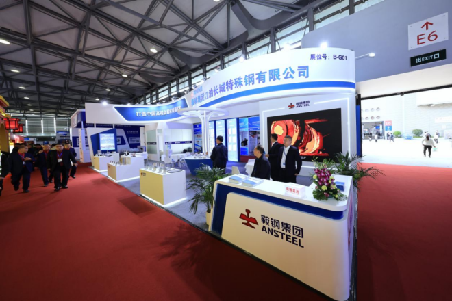 圖為鞍鋼集團(tuán)攀鋼江油長(zhǎng)城特殊鋼公司展臺(tái)