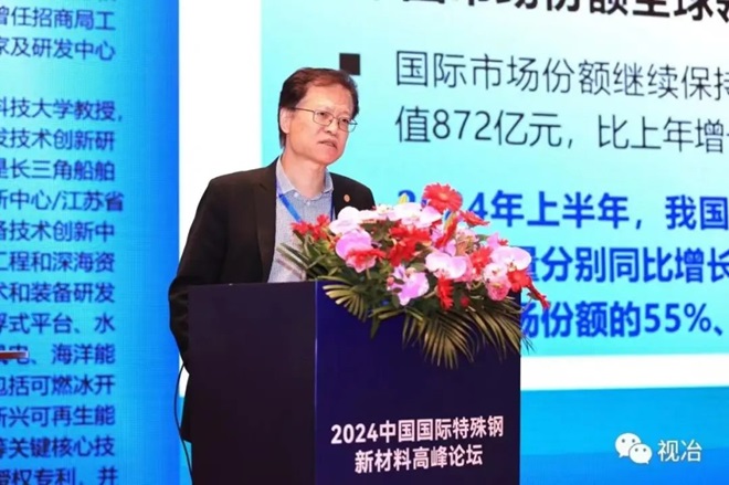 11月6日,在2024中國國際特殊鋼新材料高峰論壇上,長三角船舶與海工裝備技術創新中心主任、江蘇科技大學海洋資源開發技術創新研究院院長徐立新發表了題為《船舶與海洋工程裝備的未來展望:特殊鋼的創新與應用前景》的報告,深入探討了特殊鋼在船舶與海洋工程裝備發展中的關鍵作用和未來發展趨勢。