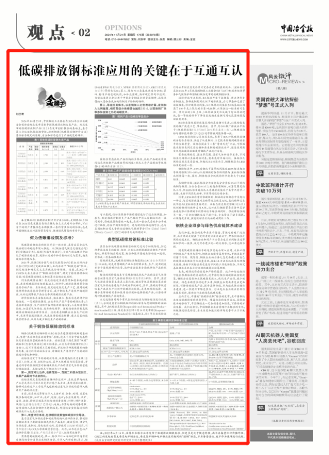 備受矚目的《低碳排放鋼評價方法》標準,是鋼協10月18日在2024綠色發展數智供應鏈大會上正式對外公布的,可以為下游用戶開展綠色采購提供一套科學且系統的依據,也是中國鋼鐵業應對國際貿易壁壘、推動綠色貿易的重要手段。