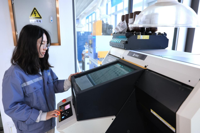 圖為大河金屬實(shí)驗(yàn)室工作人員正在測(cè)試新材料打印