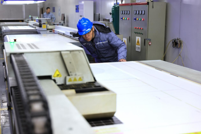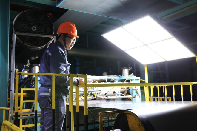 圖為大河金屬新材公司家電一部工作人員正在檢查產(chǎn)品質(zhì)量