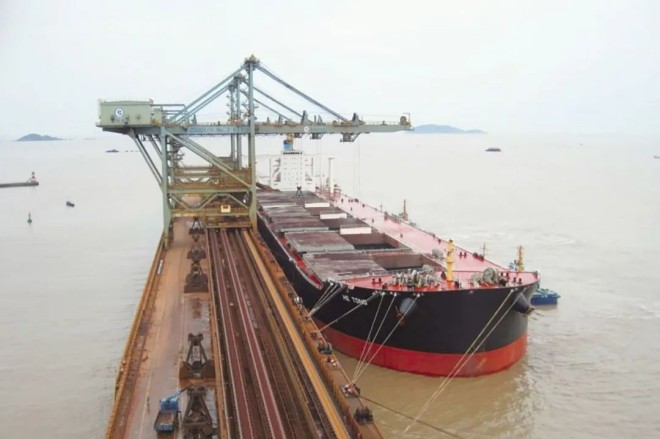 圖為中冶寶鋼保障馬跡山港春節期間的高效運轉。(中冶寶鋼 供圖)