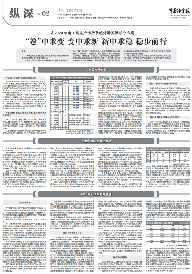 近年來,受經濟持續變化及供應端、應用端等多重影響,我國電工鋼行業出現了幾點新的變化:一是新場景需求及技術創新拉動了市場投資;二是新建電工鋼或非晶項目增多,下游企業在全球建廠,既有機遇,又有挑戰;三是中低端電工鋼或傳統市場開始減弱;四是部分企業經營困難。2024年,電工鋼行業交出的成績單折射出轉型陣痛:產量持續攀升但結構性矛盾凸顯,新舊動能轉換加速但盈利空間承壓,市場“內卷”或競爭趨于激烈已成業內關注的重要話題。