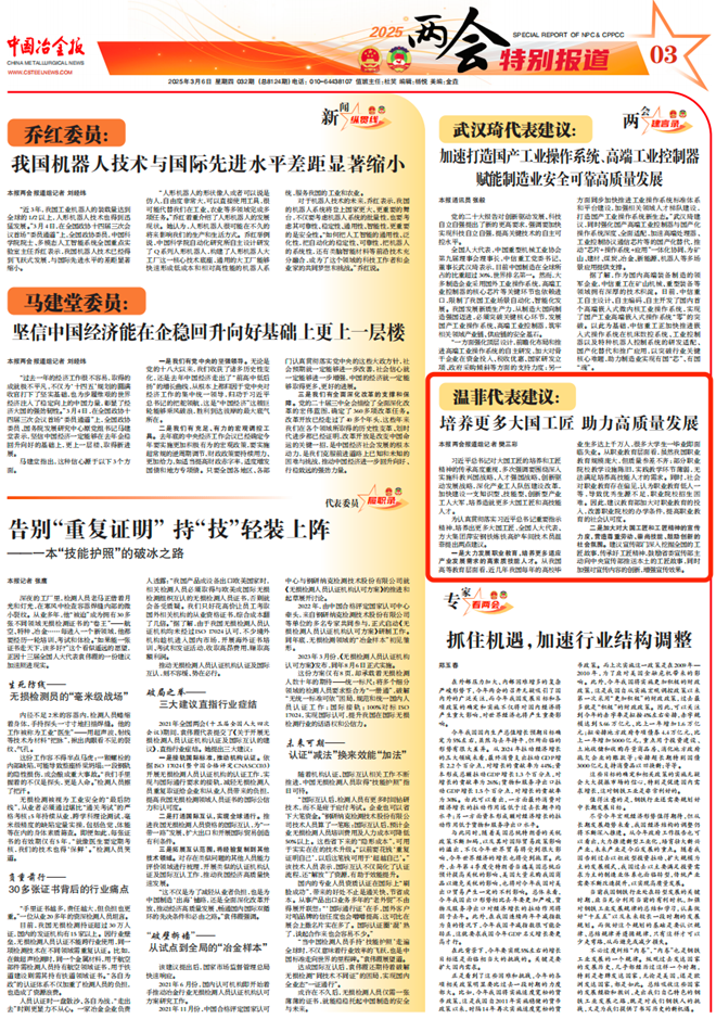為認真貫徹落實習近平總書記重要指示精神,培養出更多大國工匠,全國人大代表、方大集團萍安鋼鐵煉鐵高爐車間技術員溫菲提出兩點建議。