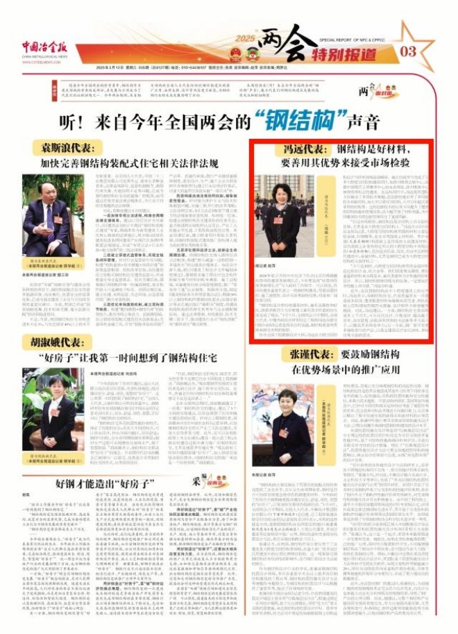兩會(huì)面對(duì)面 | 馮遠(yuǎn)代表:鋼結(jié)構(gòu)是好材料,要善用其優(yōu)勢(shì)來(lái)接受市場(chǎng)檢驗(yàn)