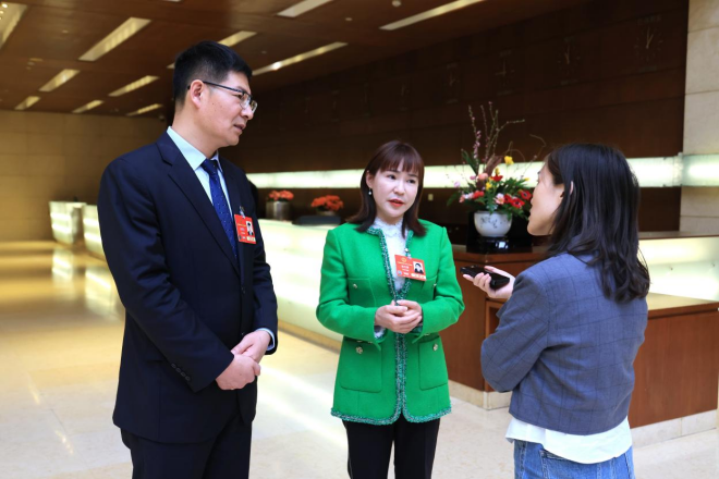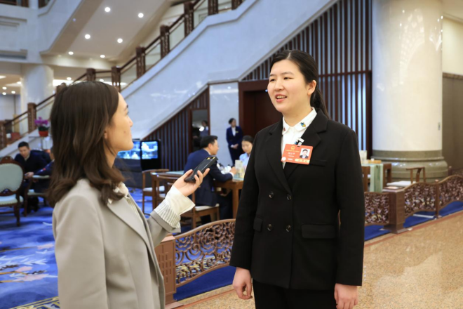 圖為王艾竹接受中國冶金報社兩會報道組記者采訪