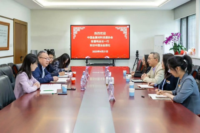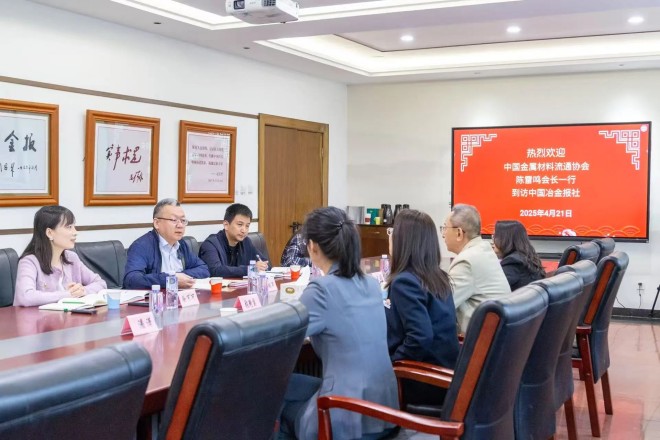 4月21日,中國金屬材料流通協會(以下簡稱“中金協”)黨支部書記、執行會長陳雷鳴一行到訪中國冶金報社,與中國冶金報社副社長范鐵軍就鋼鐵流通領域宣傳工作、雙方未來合作等內容進行了座談交流。