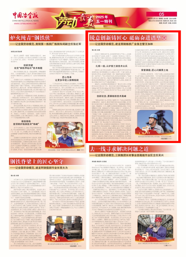 在鐵花飛濺的高爐旁,在機器轟鳴的生產(chǎn)線上,王加林30年的堅守與創(chuàng)新,詮釋了一名鋼鐵工匠的初心與擔(dān)當。從一線爐前工到技術(shù)領(lǐng)軍者,從普通黨員到全國勞動模范,他扎根煉鐵事業(yè),以精湛的技藝推動行業(yè)進步,用實干精神書寫奮斗華章。