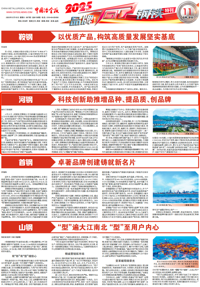 唐鋼2000兆帕級新成分吉帕級超高強(qiáng)鋼順利下線,為汽車行業(yè)輕量化發(fā)展提供最優(yōu)材料解決方案;邯鋼國內(nèi)首發(fā)抗拉強(qiáng)度1500兆帕、1.0毫米極限薄規(guī)格耐腐蝕冷軋熱成型鋼C2101NSSL并交付客戶使用,填補(bǔ)了國內(nèi)冷軋熱成形鋼無耐腐蝕系列產(chǎn)品的空白;承德釩鈦立足釩鈦特色優(yōu)勢,全方位打造釩鈦品牌,連續(xù)10年、累計30余個產(chǎn)品榮獲冶金產(chǎn)品實物質(zhì)量“金杯獎”;大河金屬“會呼吸的彩涂板”“舌尖上的金屬”,為家電家居、食品飲品包裝等提供顏值引領(lǐng)和安全守護(hù),走進(jìn)千家萬戶,賦能美好生活……(余天門 張培軍)