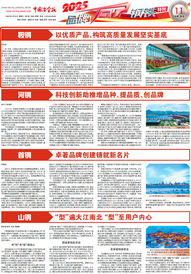 1月23日,習近平總書記到本鋼板材冷軋總廠第三冷軋廠考察期間指出,要不斷提高產品科技含量和附加值。總書記的重要指示讓鞍鋼集團廣大干部職工激動、自豪,倍感振奮,以更加飽滿的工作熱情投入到技術含量高、附加值高的新產品研發工作中。鞍山鋼鐵全球首發海洋建筑結構用耐蝕鋼板并實現工業化生產,該產品成功應用于服役在嚴酷海洋環境下的建筑,標志著我國高性能、長使用壽命海洋建筑結構用鋼達到國際領先水平。攀鋼成功制備出18噸大規格某高溫合金電渣錠,填補了國內大錠型高溫合金電渣錠生產空白,標志著攀鋼高溫合金材料制備技術取得新突破。凌鋼通過技術攻關,成功批量軋制出Q355ZF1.8毫米極限薄規格光伏支架用鋼,各項性能指標合格,對凌鋼拓展高附加值產品規格種類、提高產品市場競爭力具有重要意義。