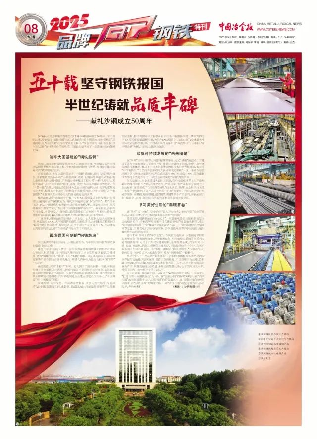 2025年,江蘇沙鋼集團有限公司(下稱沙鋼)迎來成立50周年。半個世紀以來,沙鋼堅守“鋼鐵報國”初心,認真踐行“造中國品牌、創世界精品”品牌戰略,以“鋼鐵脊梁”托舉國家重大工程,以“綠色智造”引領行業變革,以“中國品質”在世界舞臺盡展風采,用鋼鐵力量書寫了一部波瀾壯闊的強國史詩。