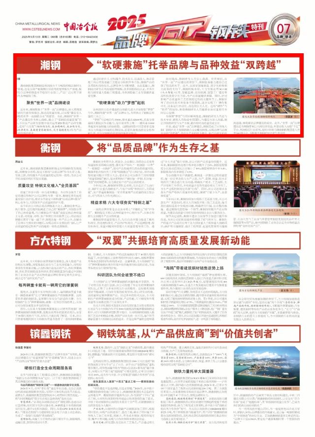 目前,通過“世界一流”品牌建設,湘鋼完成了從傳統大鋼廠到現代化大型鋼鐵聯合企業蝶變轉型,實現品牌與品種效益的“雙跨越”,勞動生產率的穩步提升、新產品研發的連戰連捷,體現著該品牌建設的成效。此外,“世界一流”品牌建設還為湘鋼帶來巨大的經濟效益,年營業收入站穩“千億”平臺、利潤穩居行業前列,連續3年助力湖南鋼鐵集團進入世界500強企業,不斷提升湘鋼的知名度與美譽度。(何展)