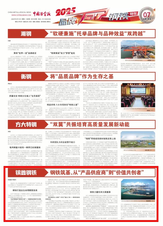 當一列列高鐵穿越山河時,當一座座核電站點亮萬家時,鑌鋼人深知:品牌建設的終極意義,是讓每一噸鋼材都成為“中國制造”的自信宣言。正如鑌鑫鋼鐵董事長林滔所說:“品牌不只是LOGO,更是客戶遇到難題時第一個想到你的理由。”(徐逸萱 李慧珍)