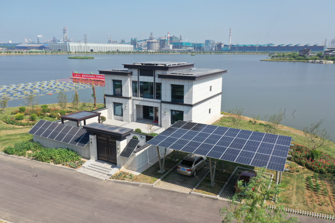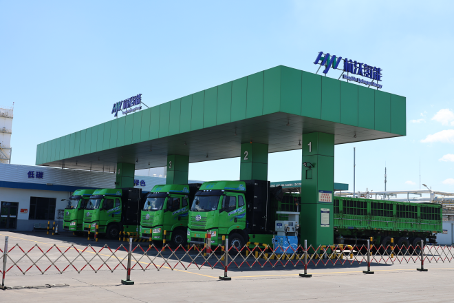 全球首套1860立方米高爐噴氫系統(tǒng)穩(wěn)定運行,可降低焦炭消耗和碳排放;獨家引進(jìn)國外專利技術(shù),將焦?fàn)t煤氣、轉(zhuǎn)爐煤氣轉(zhuǎn)化為乙二醇和LNG(液化天然氣),每年固碳136萬噸;550兆瓦光伏覆蓋廠房頂、停車場、鹽堿地等場景,年發(fā)電10億千瓦時,年減排108萬噸二氧化碳;600輛氫能重卡加電動裝載機(jī)實現(xiàn)運輸零排放。