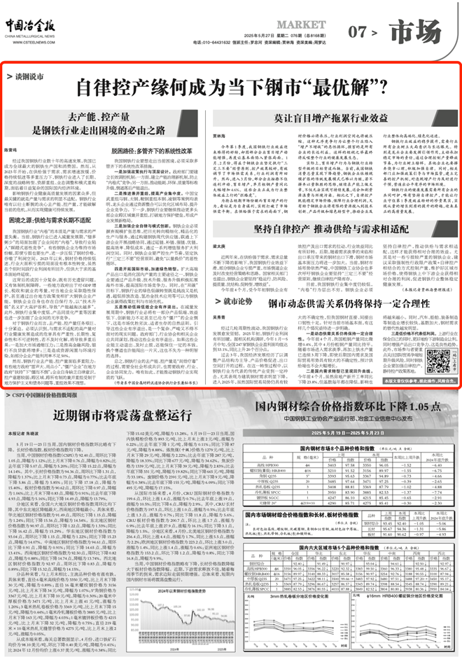 實際上,盲目增產行為與鋼鐵行業轉型升級的目標背道而馳。當前,我國鋼鐵消費總量呈現下降趨勢,鋼鐵企業依賴規模擴張的傳統發展模式已難以為繼,若不摒棄以量取勝的思維,繼續在產能上做文章,不僅無法實現可持續發展,還會加劇資源浪費與環境污染。相比之下,自律控產既能穩定市場價格、保障行業合理利潤,又有助于鋼鐵企業將有限的資源投入到技術創新、產品升級和綠色轉型中,推動企業及行業整體向高端化、綠色化邁進。