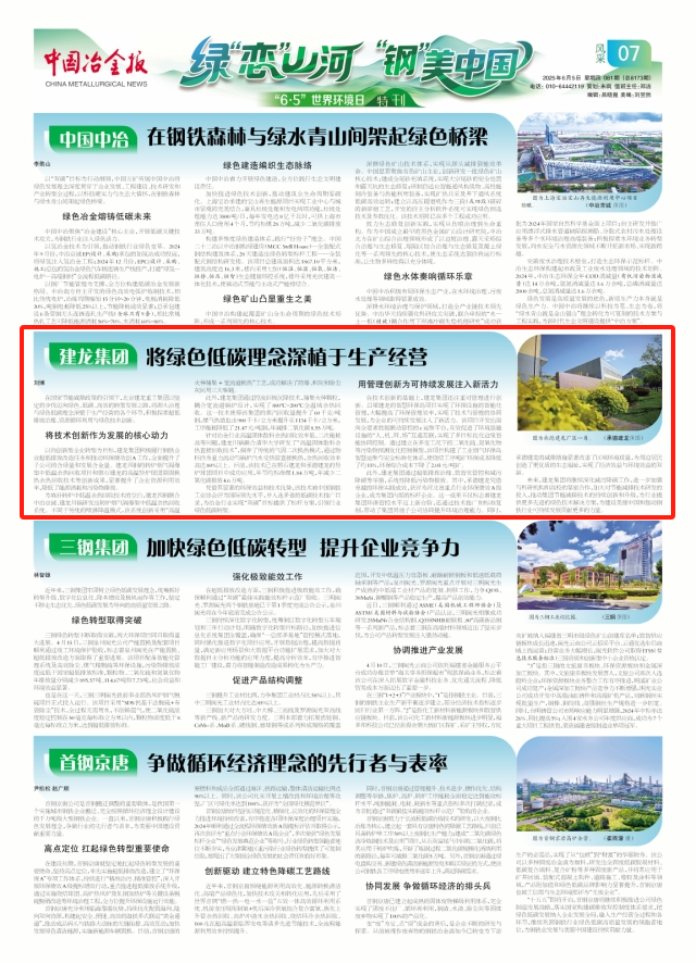 未來,建龍集團將繼續深化減污降碳工作,進一步加強與科研機構和高校的緊密合作,加大對節能減排技術研發的投入,推動集團節能減排技術的持續創新和升級,為行業提供更多先進的綠色技術解決方案,為建設美麗中國和推動鋼鐵行業可持續發展貢獻更多的力量。(劉博)