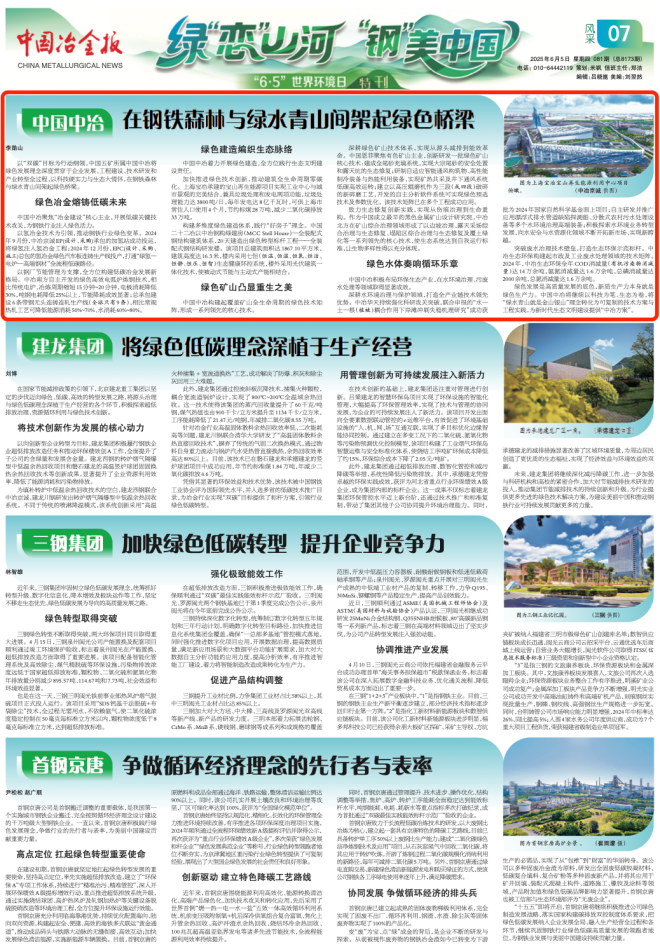 以“雙碳”目標為行動綱領,中國五礦所屬中國中冶將綠色發展理念深度貫穿于企業發展、工程建設、技術研發和產業轉型全過程,以科技硬實力與生態大情懷,在鋼鐵森林與綠水青山間架起綠色橋梁。