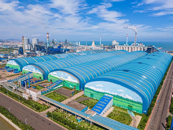 圖為航拍日照鋼鐵精品基地。(郭陽 攝)