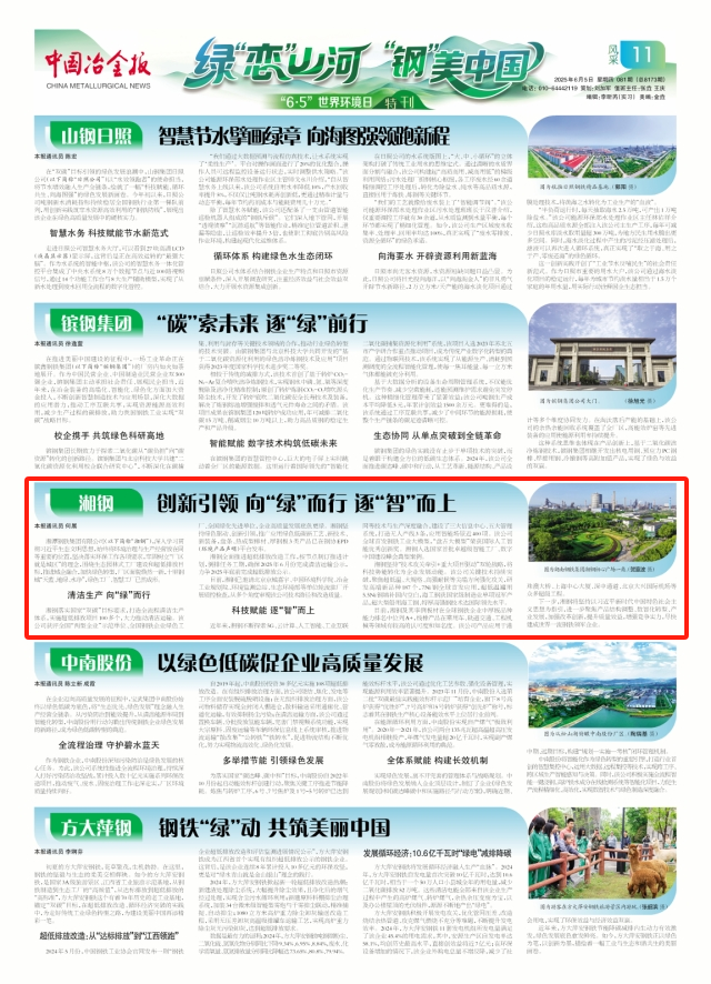 湘鋼落實國家“雙碳”目標要求,打造全流程清潔生產體系,實施超低排放項目100多個,大力推動清潔運輸。該公司獲評全國“兩型企業”示范單位、全國鋼鐵企業綠色工廠、全國綠化先進單位,企業高質量發展底色更綠。湘鋼堅持綠色驅動、創新引領,推廣應用綠色低碳新工藝、新技術、新裝備,盤條、熱成型棒材、厚鋼板3類產品已在鋼協EPD(環境產品聲明)平臺發布。