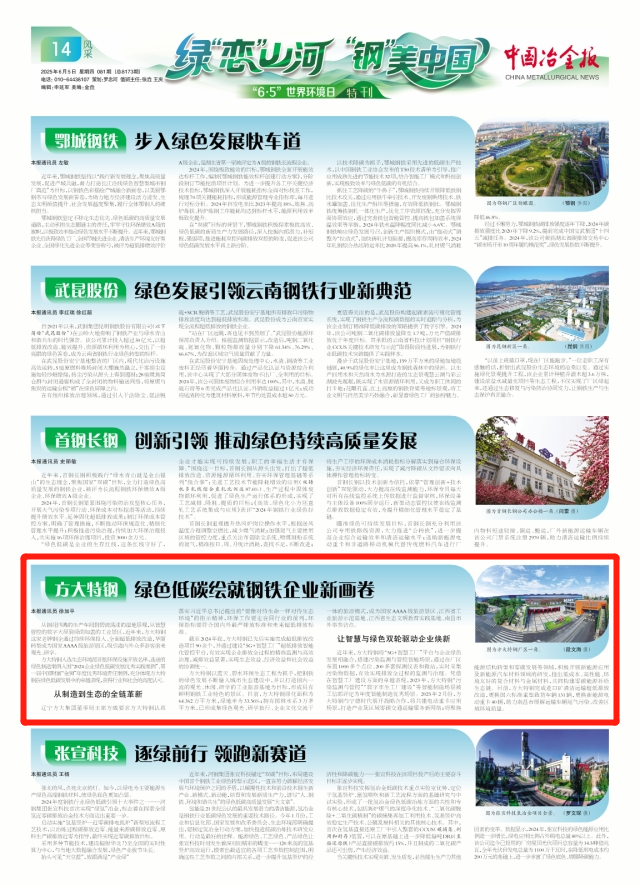 方大特鋼入選生態(tài)環(huán)境部首批環(huán)保設(shè)施開放名單,選送的綠色制造案例入圍“2024企業(yè)綠色低碳發(fā)展優(yōu)秀實(shí)踐案例”、第一屆中國(guó)財(cái)富“金獅”年度優(yōu)秀環(huán)境責(zé)任案例,充分體現(xiàn)方大特鋼在綠色低碳發(fā)展中的卓越表現(xiàn),獲得行業(yè)和社會(huì)的高度認(rèn)可。