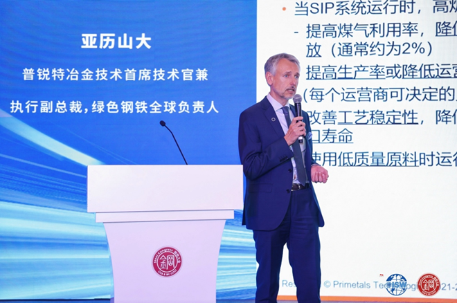 普銳特冶金技術全球首席技術官兼執行副總裁,綠色鋼鐵全球負責人亞歷山大博士出席“鋼鐵行業綠色低碳技術交流會”分論壇并作題為“綠色鋼鐵轉型——從承諾走向執行”的主題報告。他表示,鋼鐵行業正面臨需求停滯、能源轉型、原料緊張及脫碳需求緊迫等多重挑戰,公司通過對現有資產的工藝優化而在鋼鐵價值鏈的各個環節開發低碳方案。據他介紹,普銳特冶金技術推進數字和可持續冶金革命分為三個階段:優化階段、過渡階段、綠鋼階段,在每個階段普銳特冶金技術均為鋼鐵冶金流程提供創新性的技術方案。