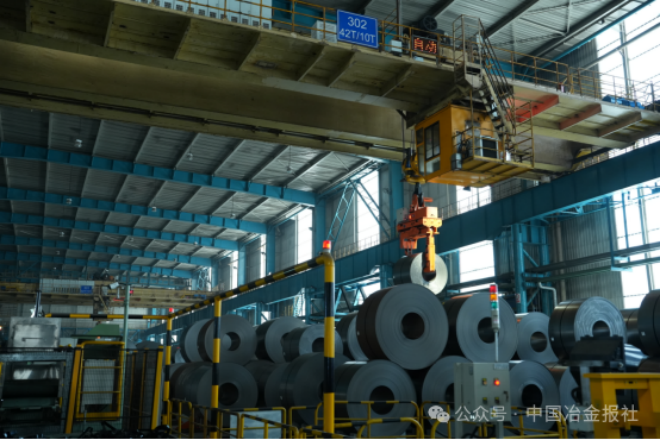 這種技術(shù)突破在首鋼冷軋隨處可見(jiàn)。智能切頭尾系統(tǒng)通過(guò)提取熱軋與冷軋帶鋼的頭尾特征,將鍍鋅線每個(gè)鋼卷的平均切損從9.89米降至6.5米;39套攝像頭組成的視覺(jué)識(shí)別系統(tǒng)如同“電子哨兵”,24小時(shí)監(jiān)測(cè)帶鋼表面黑點(diǎn)、卡鋼堆鋼等異常,使鍍鋅線設(shè)備綜合效率(OEE)提升19%;無(wú)人檢化驗(yàn)車(chē)間里,各個(gè)檢測(cè)設(shè)備實(shí)現(xiàn)自動(dòng)檢測(cè),檢測(cè)結(jié)果直接上傳MES(制造執(zhí)行系統(tǒng))進(jìn)行質(zhì)量判定,實(shí)現(xiàn)“數(shù)據(jù)不落地”的全流程管控。5G技術(shù)的深度應(yīng)用則破解了物流瓶頸。在備料區(qū),超級(jí)電容驅(qū)動(dòng)的RGV(有軌制導(dǎo)車(chē)輛)沿著預(yù)設(shè)路線穿梭,通過(guò)5G網(wǎng)絡(luò)與調(diào)度系統(tǒng)實(shí)時(shí)聯(lián)動(dòng),自動(dòng)完成鋼卷轉(zhuǎn)運(yùn)與充電?!耙郧?臺(tái)天車(chē)經(jīng)常‘打架’,現(xiàn)在地面運(yùn)輸全自動(dòng)化,物流效率提升40%。”李鳳惠介紹,這套系統(tǒng)解決了冷軋行業(yè)“物流復(fù)雜導(dǎo)致生產(chǎn)組織受限”的共性難題。