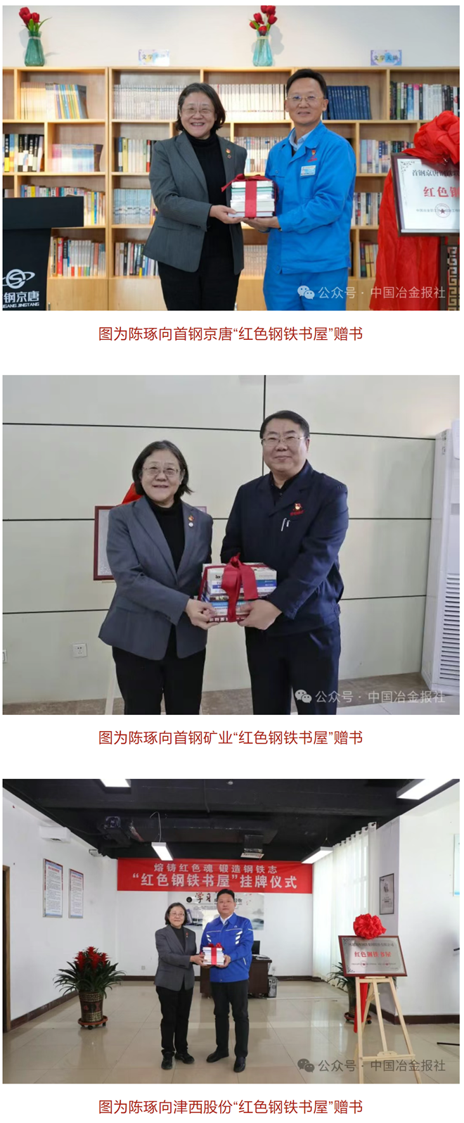 在首鋼京唐、首鋼礦業(yè)和津西股份,與會領(lǐng)導(dǎo)共同為“紅色鋼鐵書屋”揭牌,并實(shí)地調(diào)研書屋建設(shè)成果。各書屋規(guī)劃科學(xué)、功能完善,藏書涵蓋紅色經(jīng)典、專業(yè)冶金、文學(xué)藝術(shù)及生活科普等多個門類,實(shí)現(xiàn)了思想性、專業(yè)性與實(shí)用性的有機(jī)融合,營造出濃郁書香和厚重文化氛圍。活動中,冶金工業(yè)出版社還向各企業(yè)贈送了一批涵蓋黨建理論、行業(yè)前沿與科技創(chuàng)新等領(lǐng)域的精品圖書,進(jìn)一步豐富了書屋的知識資源。