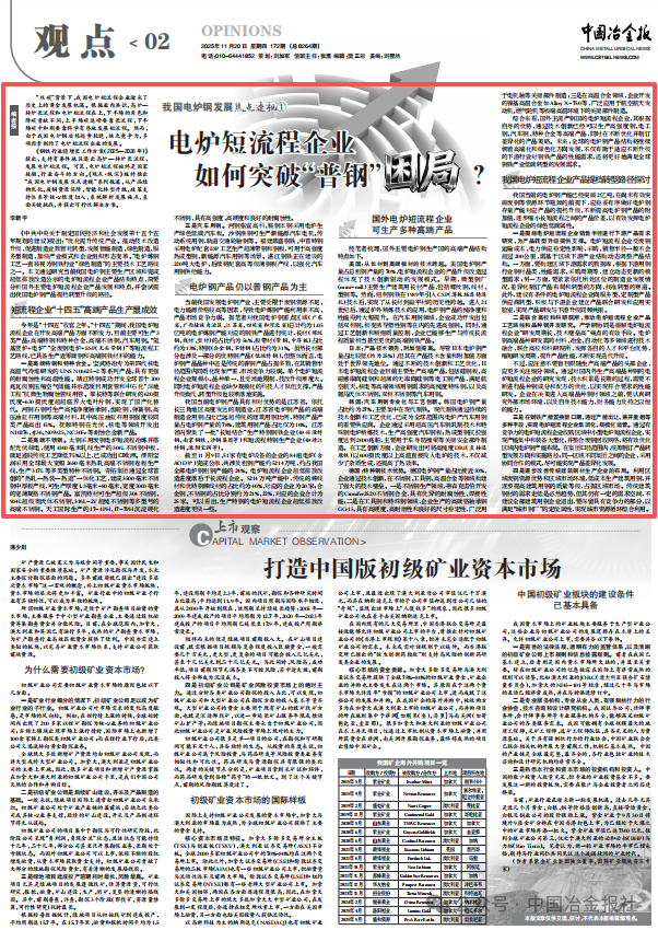 《鋼鐵行業穩增長工作方案(2025—2026年)》提出,支持有條件地區退出高爐—轉爐長流程,發展電爐短流程。可見,電爐短流程始終是國家鼓勵、行業奮斗的方向。《中國冶金報》特推出“我國電爐鋼發展焦點透視”系列報道,從產品結構優化、廢鋼資源保障、智能化轉型升級、政策支持體系等核心維度切入,系統解析發展痛點,直面關鍵挑戰,并提出可行性解決方案。