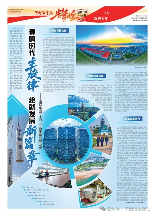 時代呼喚鋼鐵擔當,歷史期待重鑄榮光。當前,山鋼依托與中國寶武的合資協同與賦能支撐,積極融入中國寶武沿江沿海“彎弓搭箭”戰略布局。面向未來,山鋼集團將以高質量發展為首要任務,聚焦“打造具有持續極強競爭力的鋼鐵集團”奮斗目標,遵循“透明、規范、高效”的治理原則,通過生產經營與資本運營“雙輪驅動”,全面建設黨建質量高、產業結構優、創新活力足、治理效能佳、民生福祉好、股東目標明、綜合實力強的新山鋼。(褚慧娟 孫亞寧)