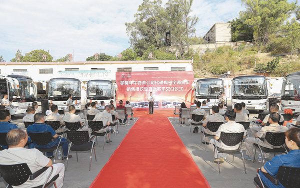 攀鋼坤牛物流代理鄭州宇通客車銷售授權儀式在四川省攀枝花市舉行。(何仁江 攝)