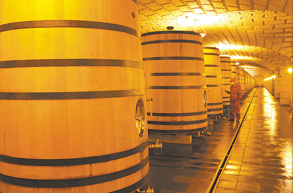 酒鋼紫軒酒業工人正在酒窖巡檢。 (酒鋼 供圖)