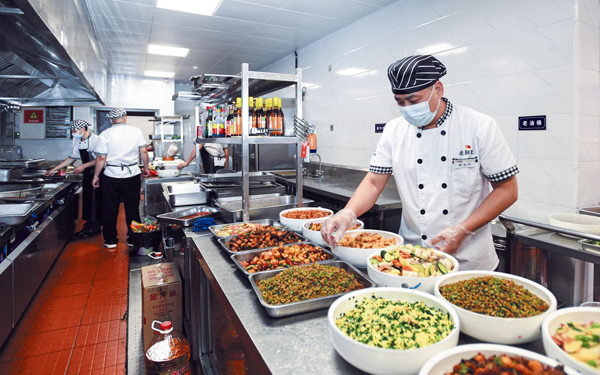 6月16日,鞍鋼集團攀鋼生活公司老廚匠餐飲分公司的廚師們正忙著為職工子女就讀的學校食堂準備午餐(如圖)。今年初以來,該分公司創(chuàng)新團膳運營模式,全員參與提升服務(wù)質(zhì)量,促進企業(yè)營收增長。1月—5月份,該分公司學生食堂板塊營業(yè)收入同比增長超過12%。 (特約通訊員 梁建偉 攝)