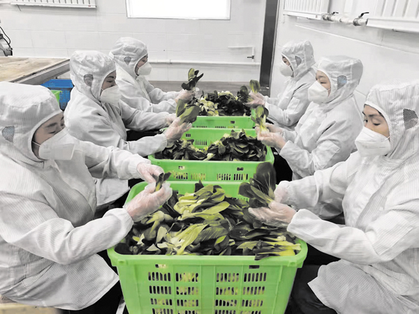 圖為酒鋼紫玉配餐人員正在擇菜。 (楊柳 攝)