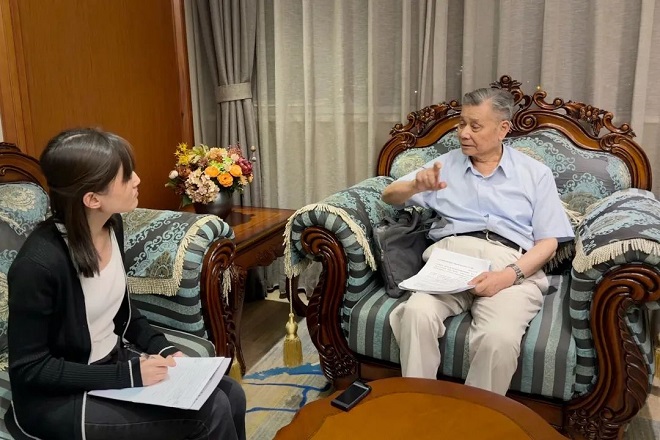 圖為殷瑞鈺正接受《中國(guó)冶金報(bào)》記者專(zhuān)訪。(記者 陳曦 攝)