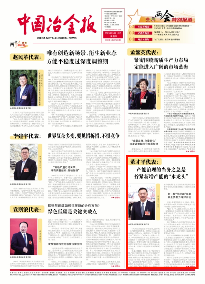 他重點(diǎn)提到了鋼鐵行業(yè)產(chǎn)能治理問題。“面對鋼鐵行業(yè)新形勢,工信部修訂產(chǎn)能置換辦法,是及時的、有必要的?!倍牌綇?qiáng)調(diào),鋼鐵行業(yè)產(chǎn)能治理要抓住“強(qiáng)供給、弱需求”的矛盾?!爱?dāng)務(wù)之急是要做好兩件事:一是擰緊新增產(chǎn)能的‘水龍頭’;二是給轉(zhuǎn)型升級走在前的企業(yè)開‘綠燈’,在政策上給予支持?!倍牌浇ㄗh,進(jìn)一步優(yōu)化產(chǎn)能治理機(jī)制,建立支持資源向優(yōu)勢企業(yè)集中的有效機(jī)制,推動鋼鐵行業(yè)持續(xù)高質(zhì)量發(fā)展。