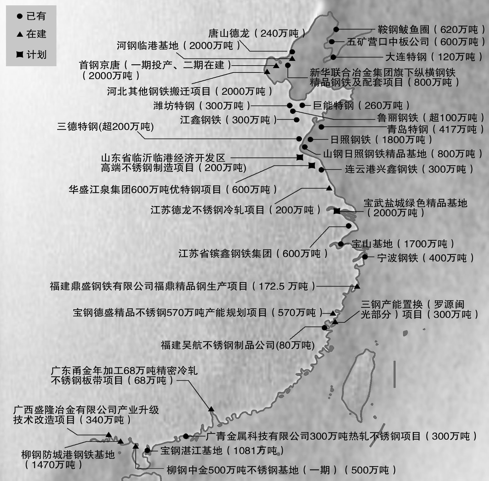 由資源型布局向臨港臨海型布局轉(zhuǎn)型,是中國鋼鐵產(chǎn)業(yè)正在經(jīng)歷的深刻變革。進(jìn)入新世紀(jì)以來,我國已經(jīng)興建了遼寧省鲅魚圈、河北曹妃甸、山東日照、廣東湛江、廣西防城港5個(gè)重要的沿海鋼鐵生產(chǎn)基地。