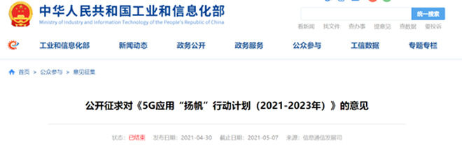 2021年4月30日,工信部發(fā)布《5G 應(yīng)用“揚帆”行動計劃(2021-2023 年)》征求意見稿,里面提出“大力推動 5G 全面協(xié)同發(fā)展,深入推進 5G 賦能千行百業(yè),促進形成“需求牽引供給,供給創(chuàng)造需求” 的高水平發(fā)展模式”。