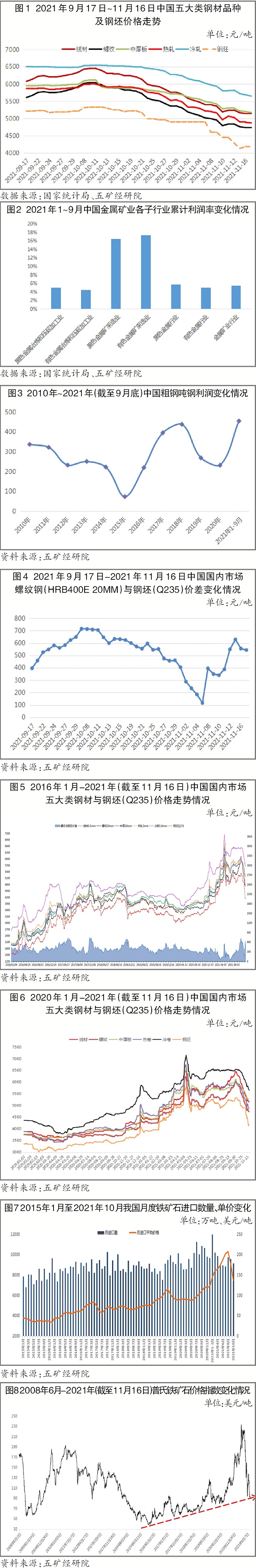 國慶節后,受國家對房地產行業、能源行業宏觀調控的影響,以鋼材為代表的黑色系商品價格全線下挫。根據中國鋼鐵工業協會鋼材價格指數,10月8日~11月16日,全國五大類鋼材品種價格平均下降1106元/噸,其中,線材(直徑為6.5毫米)、螺紋鋼(HRB400E,直徑為20毫米)價格領跌,平均下降1300元/噸以上,而鋼坯價格也受迫下降1130元/噸。據不完全調查,由于鋼價陡降,目前全國范圍內的絕大部分鋼材經銷商已陷入全面虧損,部分經銷商在此輪下行行情中已基本將前期盈利“歸零”。