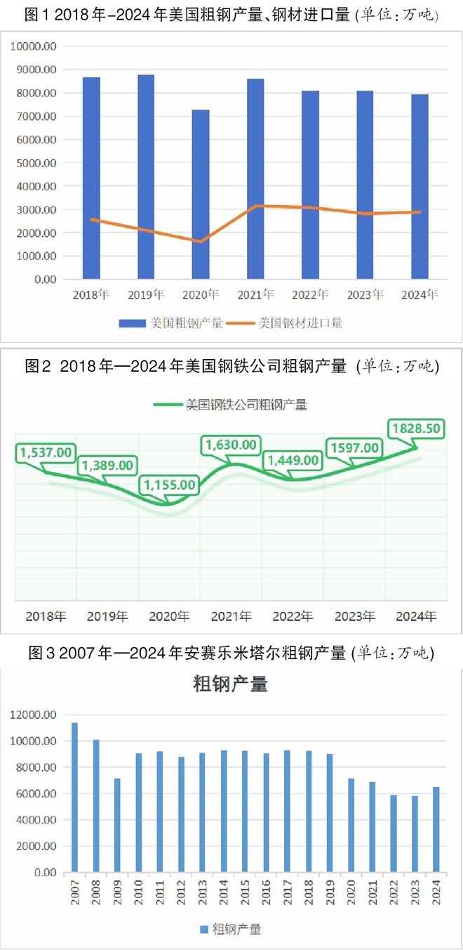 一是關(guān)稅的作用有待觀察。從2018年3月特朗普首次強化鋼鐵關(guān)稅手段至今,美國鋼鐵進口量并沒有趨勢性減少,其本土鋼鐵產(chǎn)量也大致保持穩(wěn)定。2019年美國粗鋼產(chǎn)量為8776萬噸,進口2104萬噸;2024年產(chǎn)量為7945萬噸,進口2886萬噸。后續(xù)50%的關(guān)稅能否起到復(fù)興美國本土鋼鐵業(yè)的作用仍需觀察。